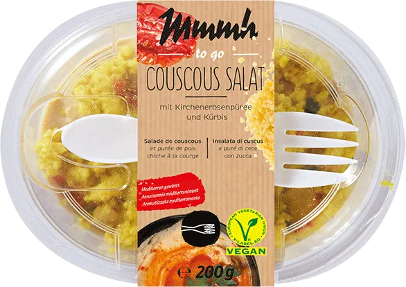 Die Mmmh-Linie zeigt die Inhaltsstoffe der Lebensmittel in möglichst unverarbeitetem Zustand und erweckt so den Eindruck von Frische. Die Typografie und der Kartonhintergrund wirken konsumentennah und handgemacht. Die Mmmh-Linie umfasst über 100 Lebensmittel. Diese stammen aus dem eigenen Sortiment, wie auch von Drittanbietern.