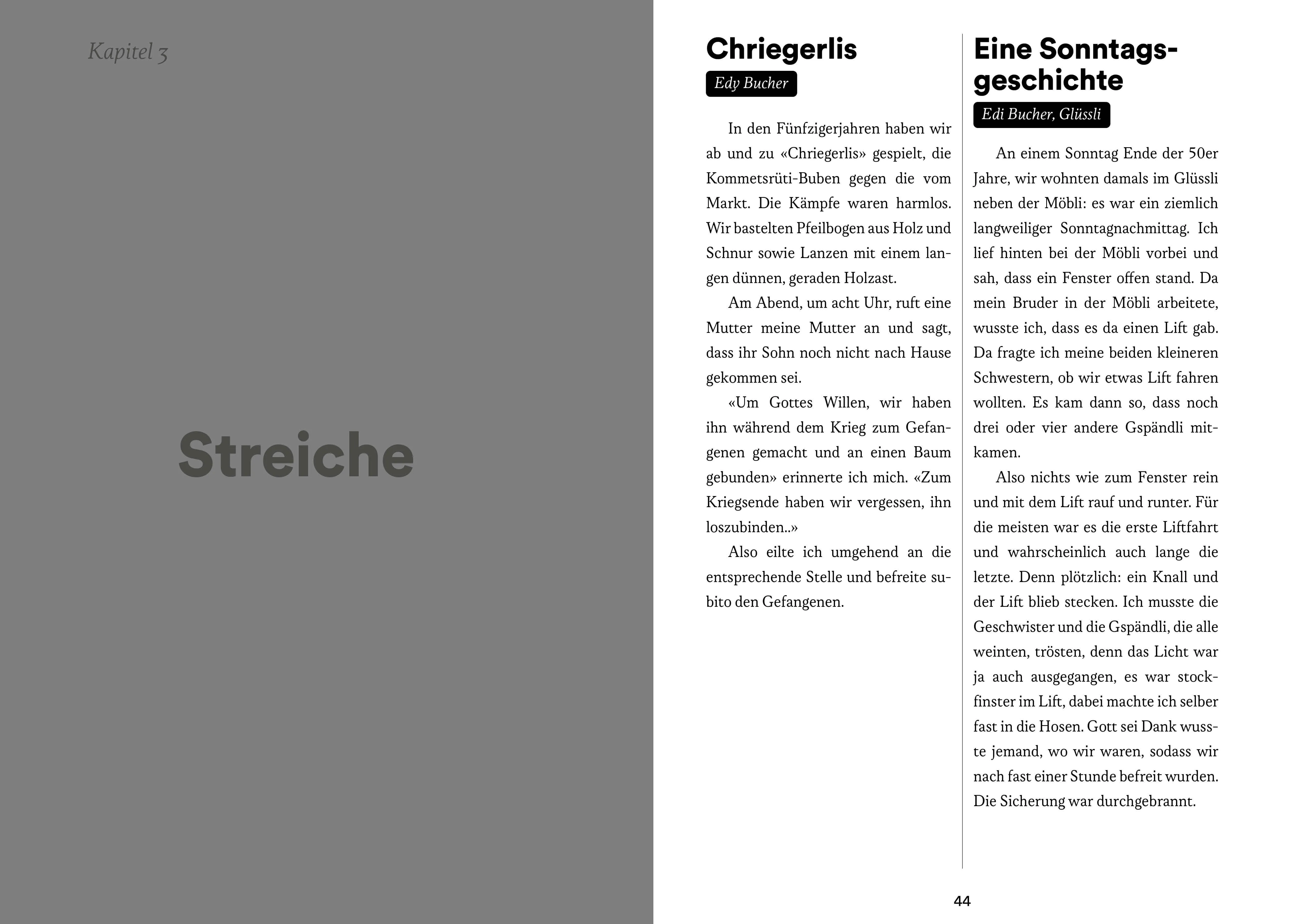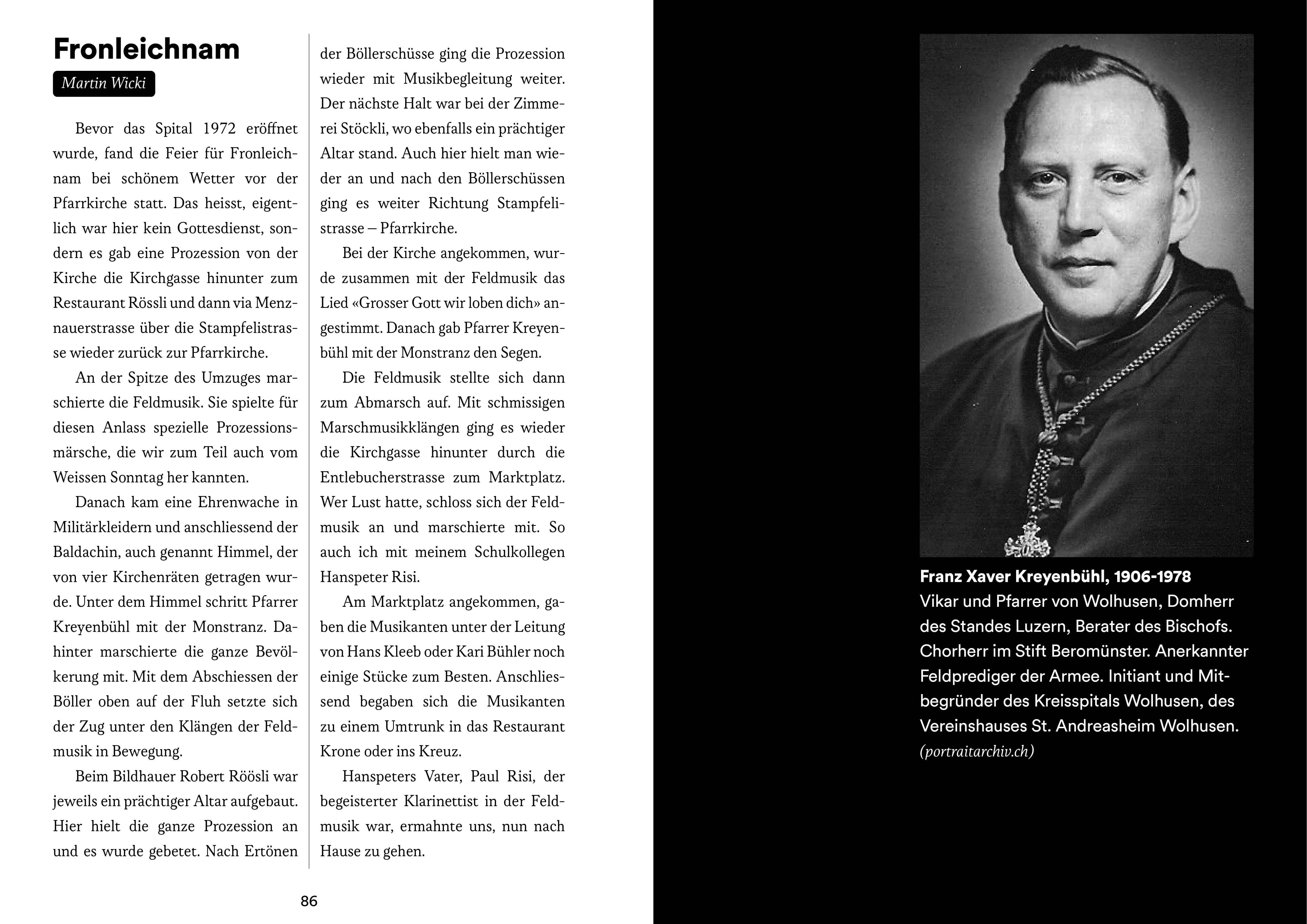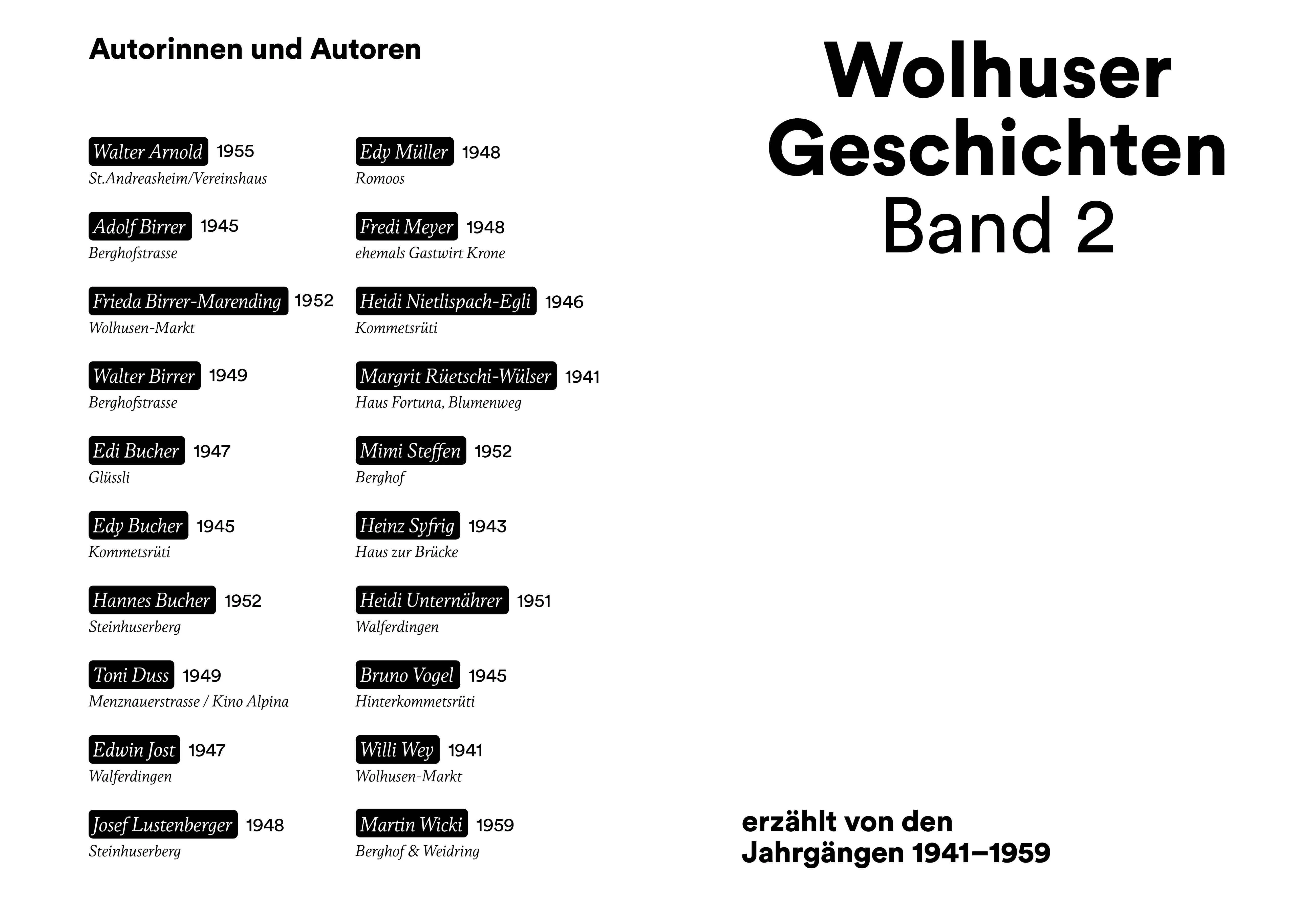 In den Wolhuser Geschichten, Band 2 beschwören Autorinnen und Autoren der Jahrgänge 1941 – 1959 Erlebnisse in- und um Wolhusen. In über 86 kurzen Geschichten erwacht die Vergangenheit des kleinen Dorfes zum leben. Das Leseheft lädt zum Eintauchen in den Kanon der Erinnerungen an einen Ort, den es heute so nicht mehr gibt. Die Geschichten wurden mit Fotografien und Illustrationen ergänzt.